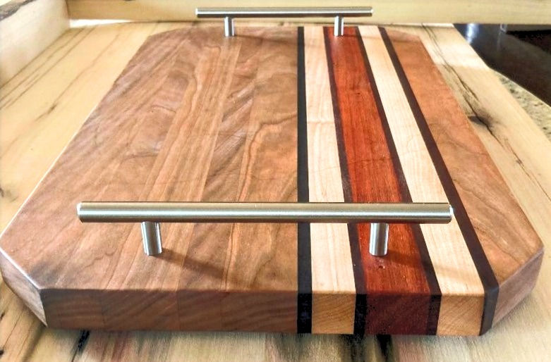 All of our Serving Trays are made from solid hardwoods with an attention to detail that is unmatched. We handcraft each tray which makes them unique. We offer custom orders and will create a tray just for you. They are available in several sizes to fit any budget. They make beautiful one of a kind gifts as well as a piece that can be handed down for generations. These trays are perfect for gift giving as we can engrave almost anything you would like on them.